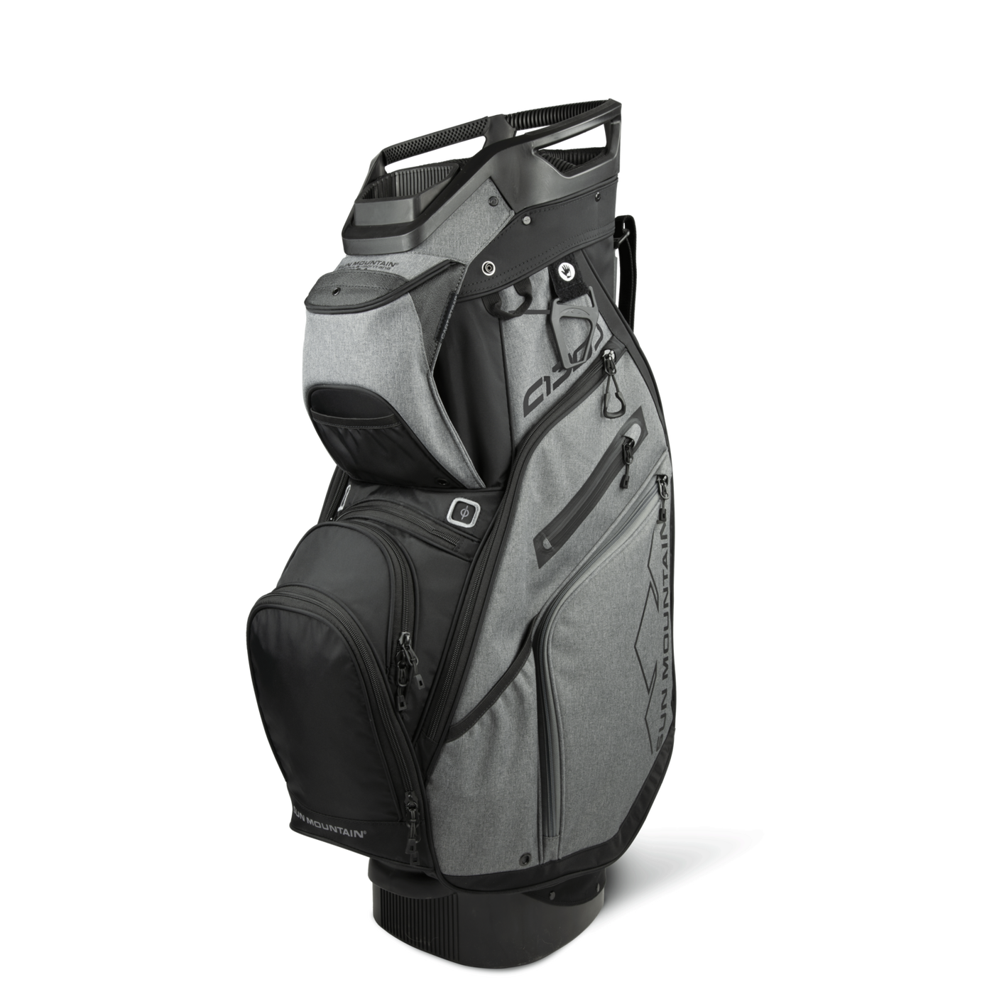 The C-130, Sun Mountain’s best-selling cart bag, was created to work optimally on a cart. All features are designed with cart use in mind, starting with the reverse orientation top with three utility handles, cart bumpers, the Smart Strap System and a convenient, roomy, velour-lined rangefinder pocket with a magnetic-closure. In addition, all pockets are forward-facing and accessible when the bag is on a cart.
