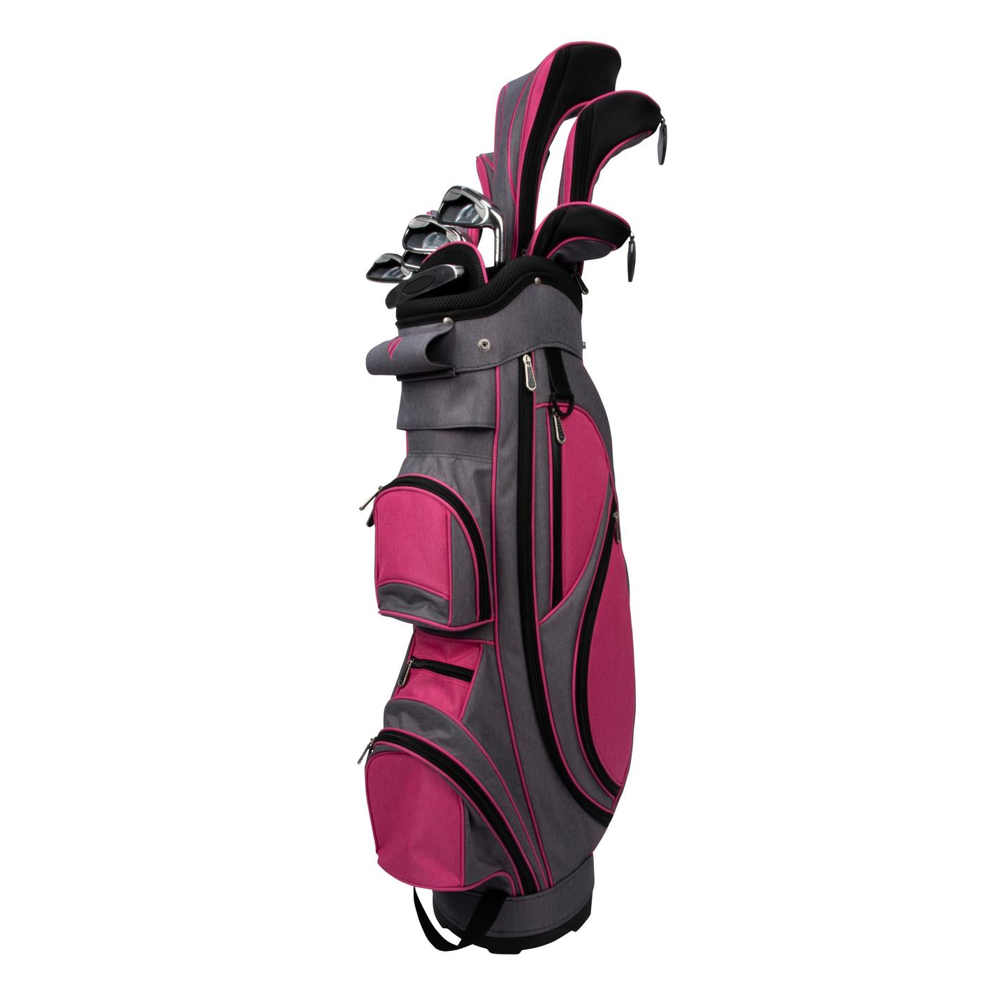 The Nancy Lopez Ashley Heather Package Set is designed specifically for women golfers, using innovative materials and performance technology. The high end, fashion bag & matching headcovers allow you to take on the course in style!