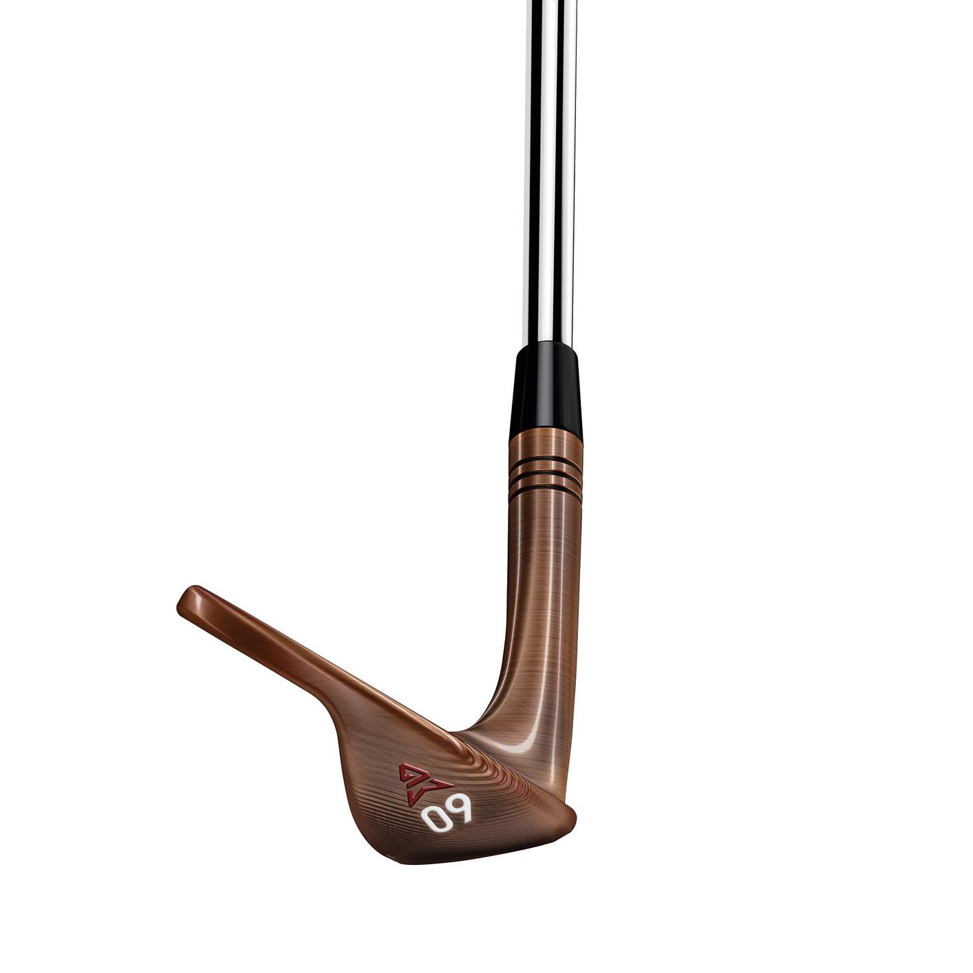The Big Foot asymmetric C-Grind sole is flatter and wider at 32mm. Combined with an anti-dig leading edge, this enhances playability and ease of use from the sand and rough. The 15 degree high bounce has a trailing edge and heel relief, keeping the leading edge low and allowing for versatility on the greens or from the sand.