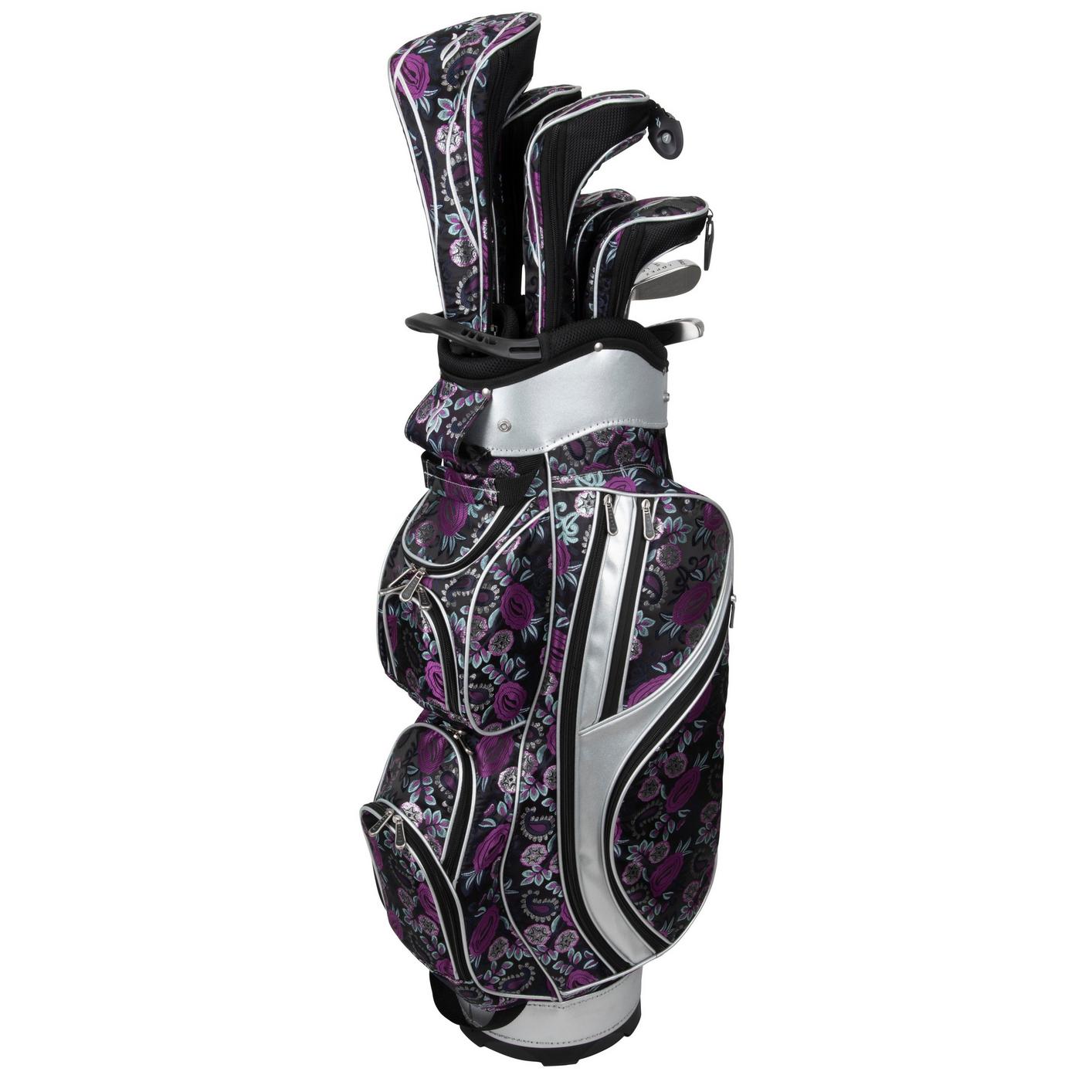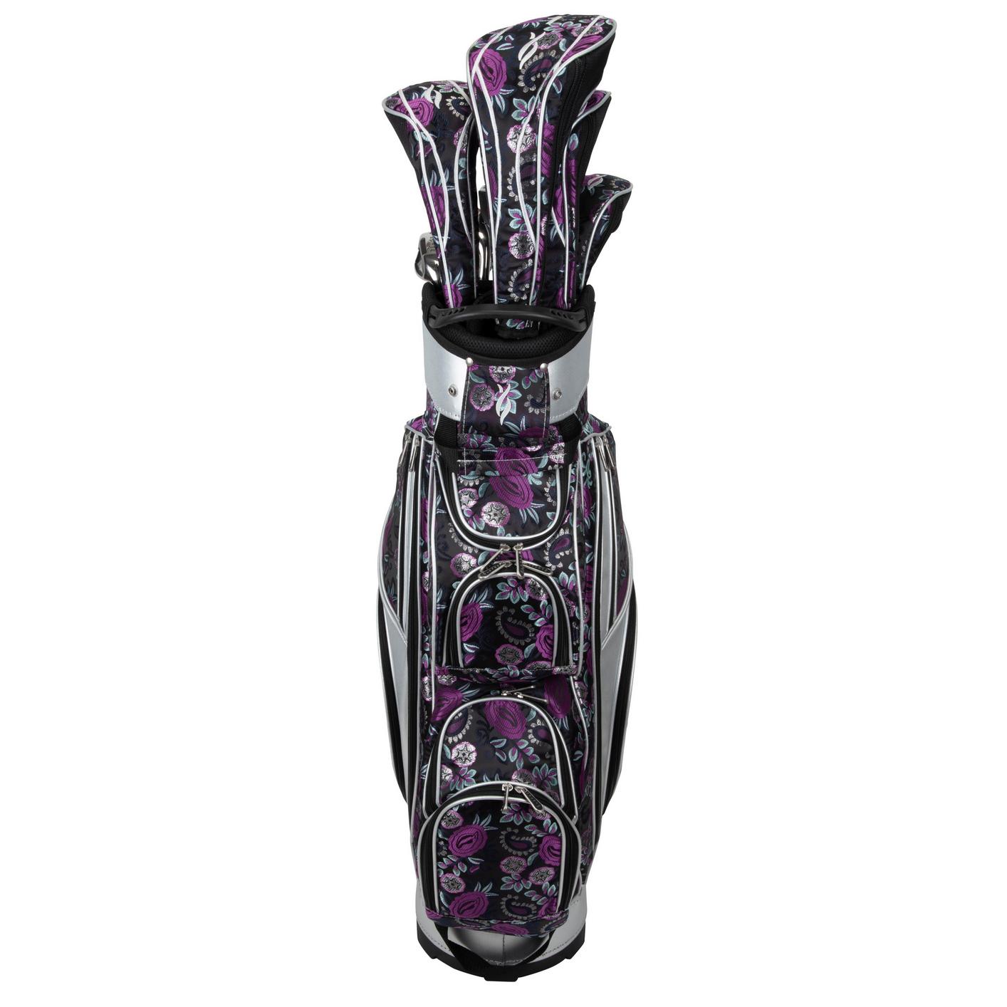 The Nancy Lopez Diva Package Set is specifically built for women golfers, using cutting-edge materials and performance technology. The high end, fashion cart bag and matching headcovers allow you to defy the eighteen holes in modern style!