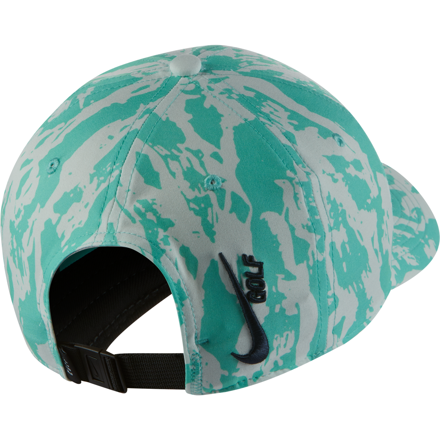 "Golf" and a Swoosh are embroidered on the back right panel.
