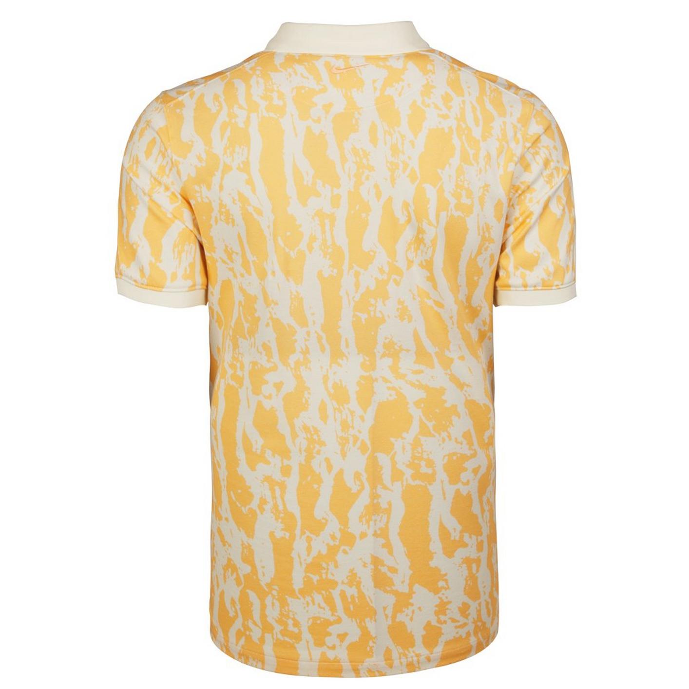 An orange label on the placket, orange thread on the top button, and a facsimile of the original Nike shoe box under the back collar infuse your look with heritage style.