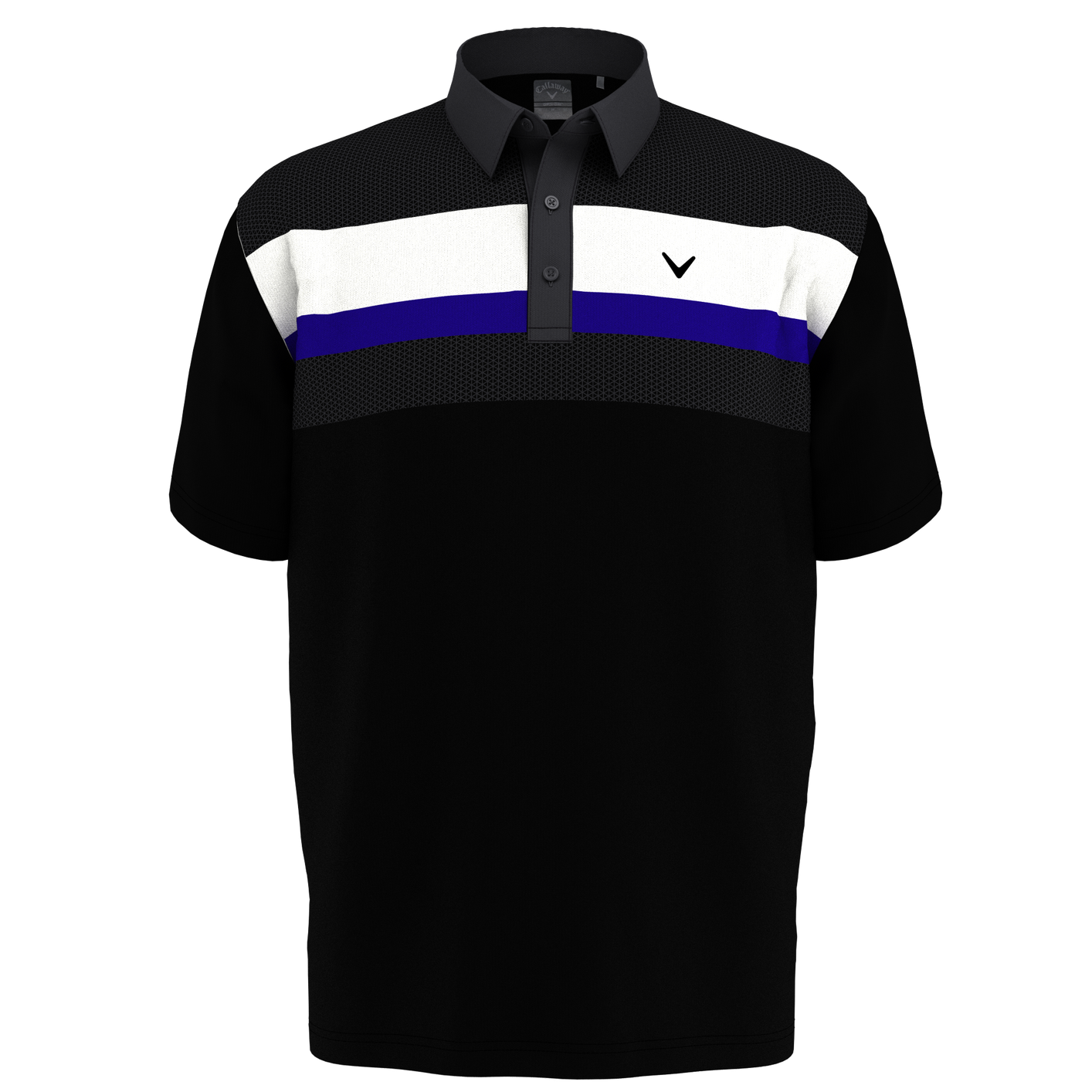 A Geo block print and bold collar add a fashionable edge to this comfortable Callaway golf polo. Stretch fabric allows for a full range of motion with every swing. Moisture-wicking technology keeps you cool, dry and looking sharp. For optimal performance on long hot days, the lightweight golf polo features UPF 50 for protection from the sun's strong UV rays.