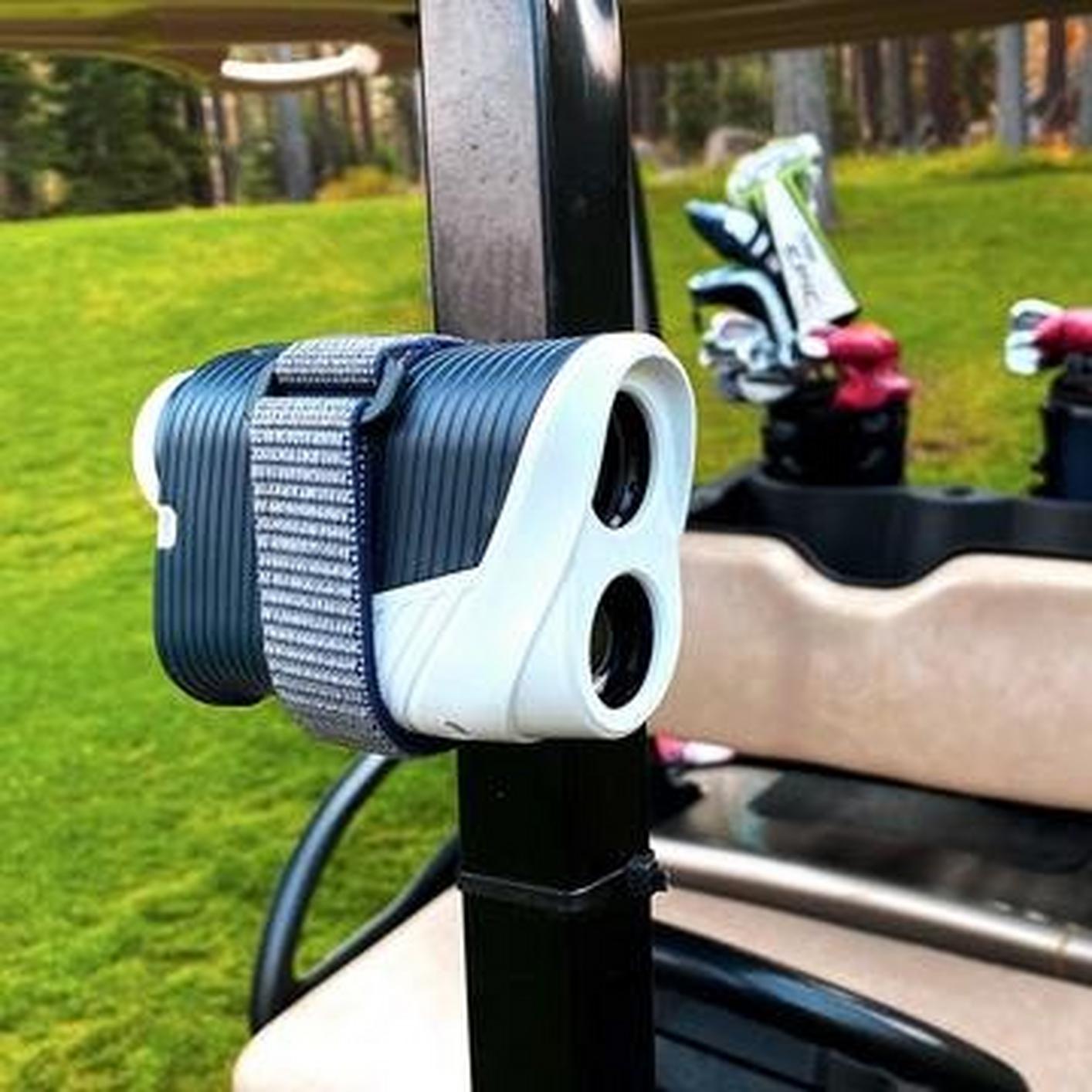 Your rangefinder's newest companion, designed to simplify your golf game. The magnetic strap attaches your rangefinder to the golf cart in between shots, allowing for quick and easy access.