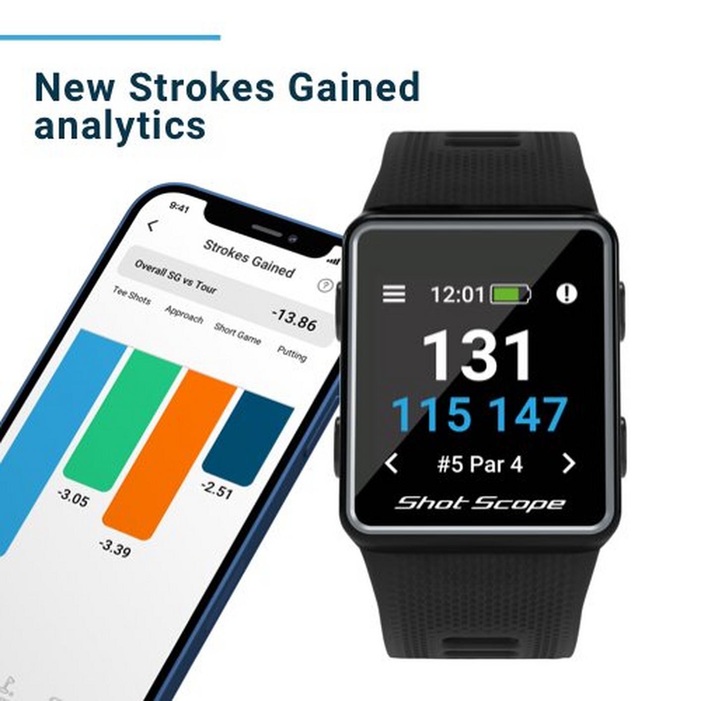 After your round, upload and analyze over 100 statistics on your game including strokes gained analytics and start improving your game. Complete with over 36,000 preloaded courses worldwide and no additional costs or subscriptions, Shot Scope V3 is one of the most desirable GPS watches on the market.