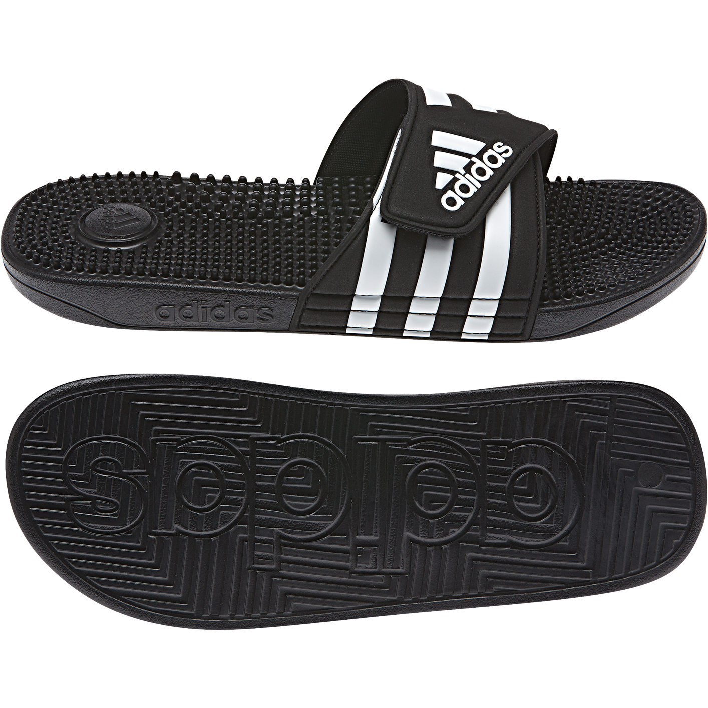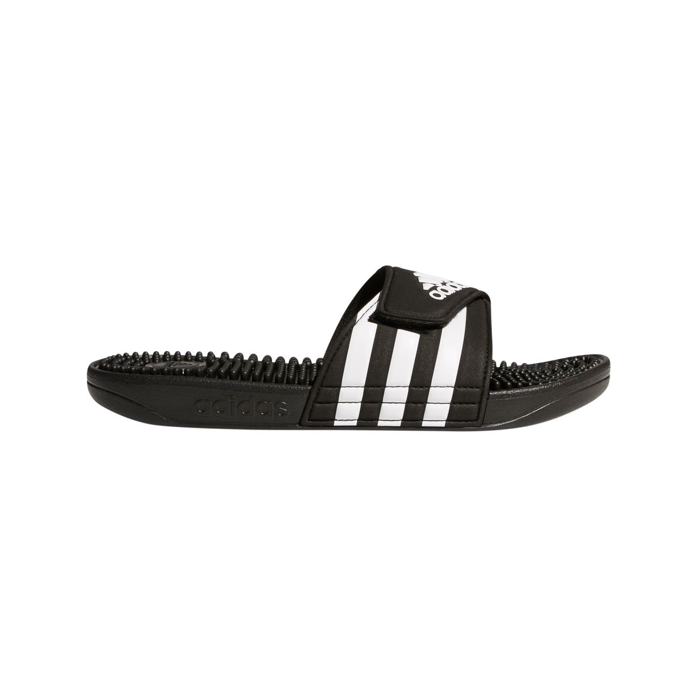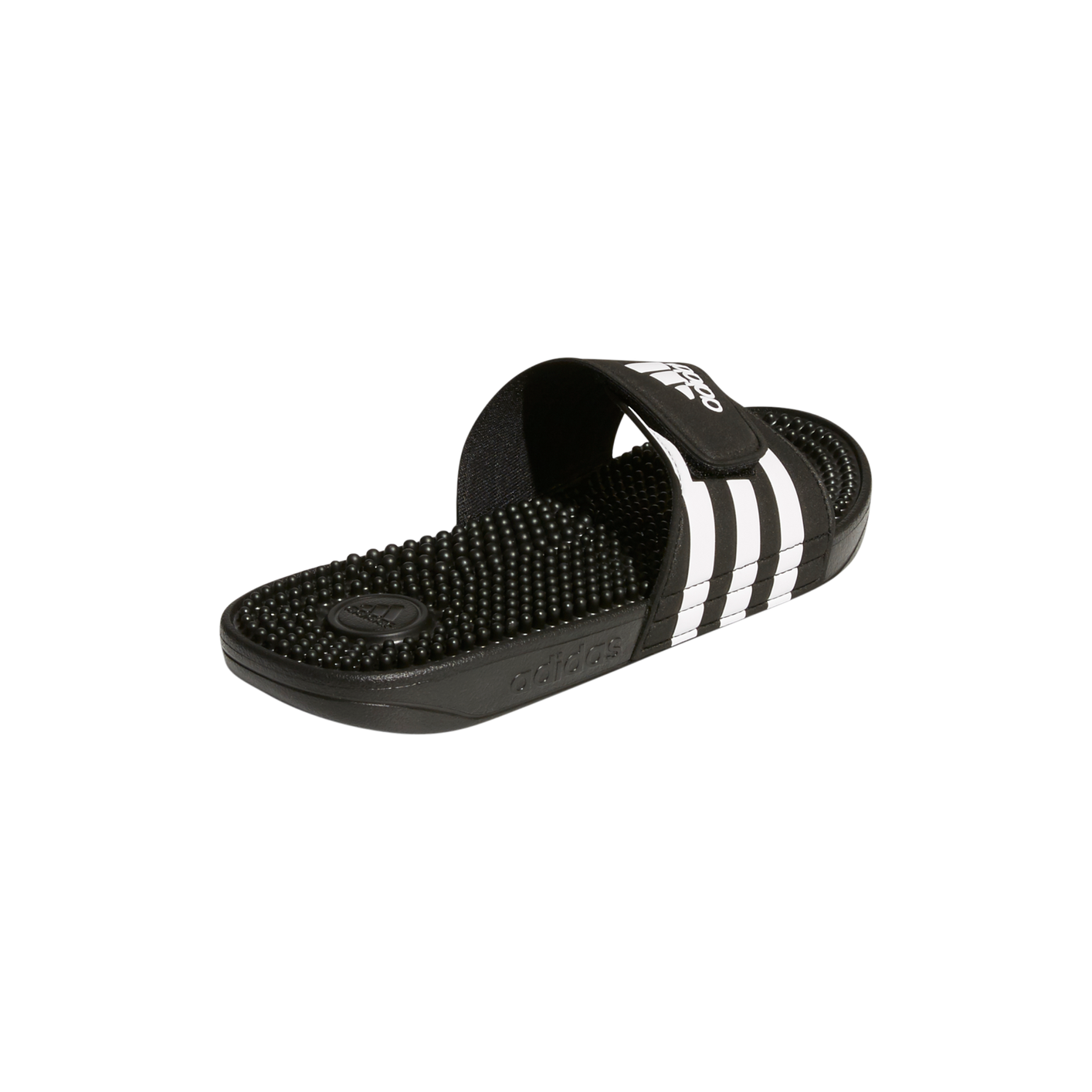 Recover from demanding workouts in these sporty slides. They have soft massaging nubs across the footbed for extra comfort. The hook-and-loop closure across the synthetic upper features the classic 3-Stripes.