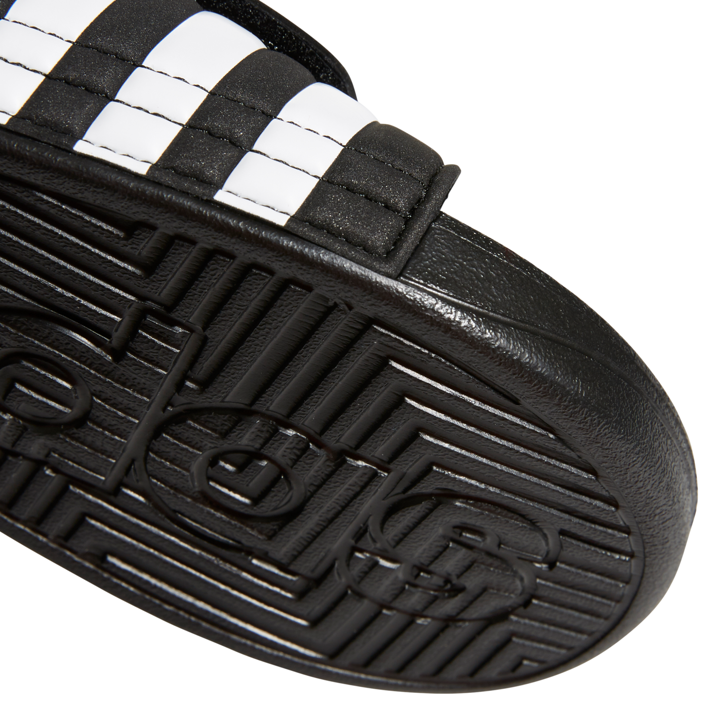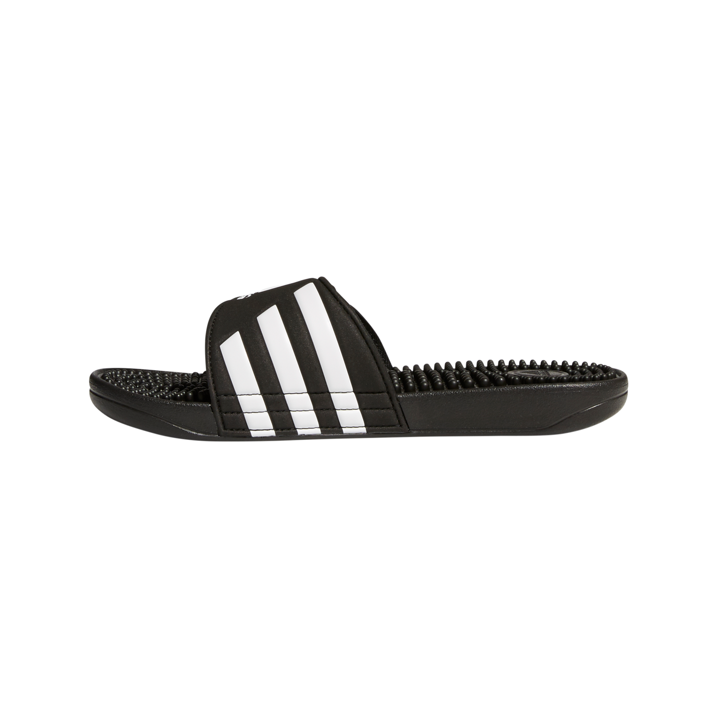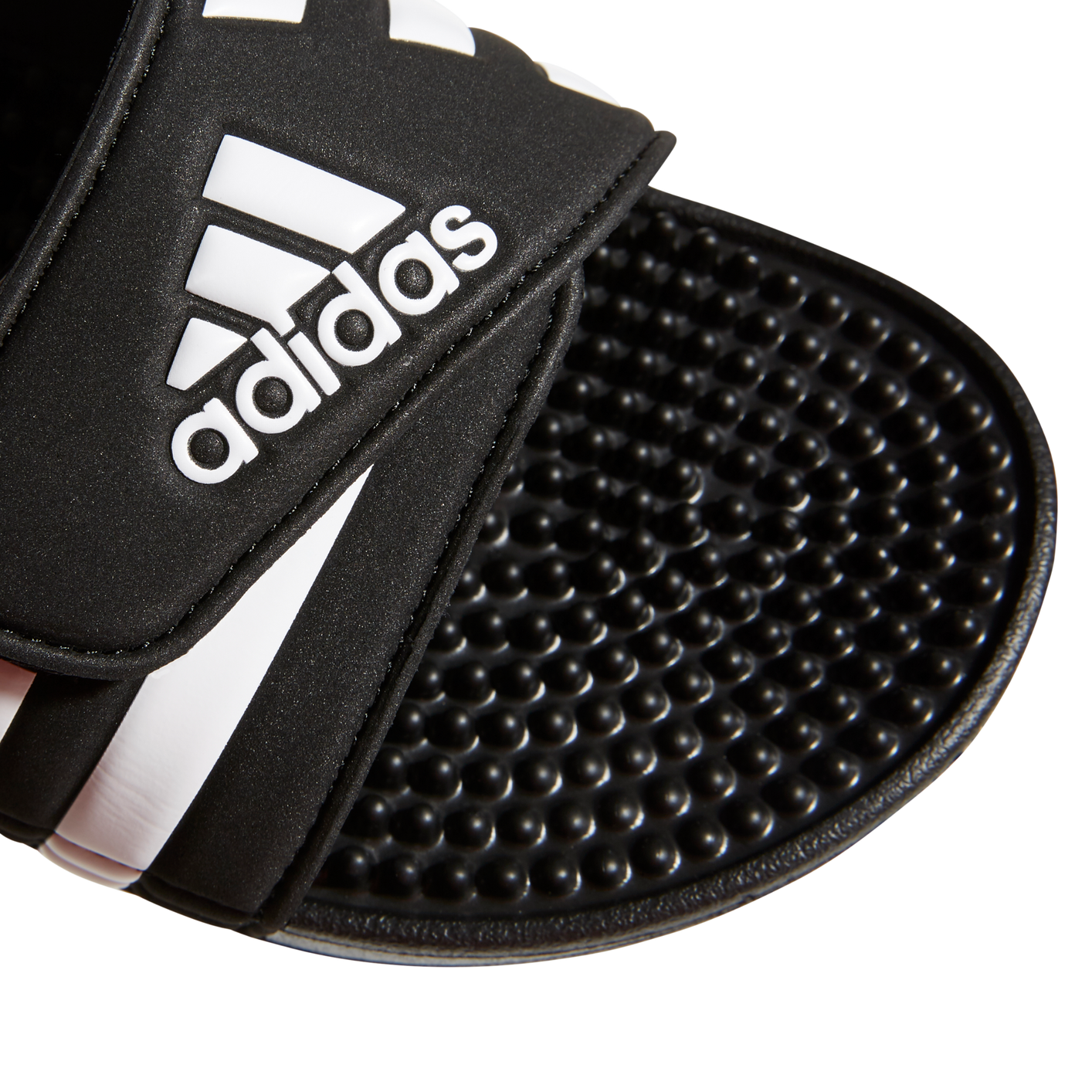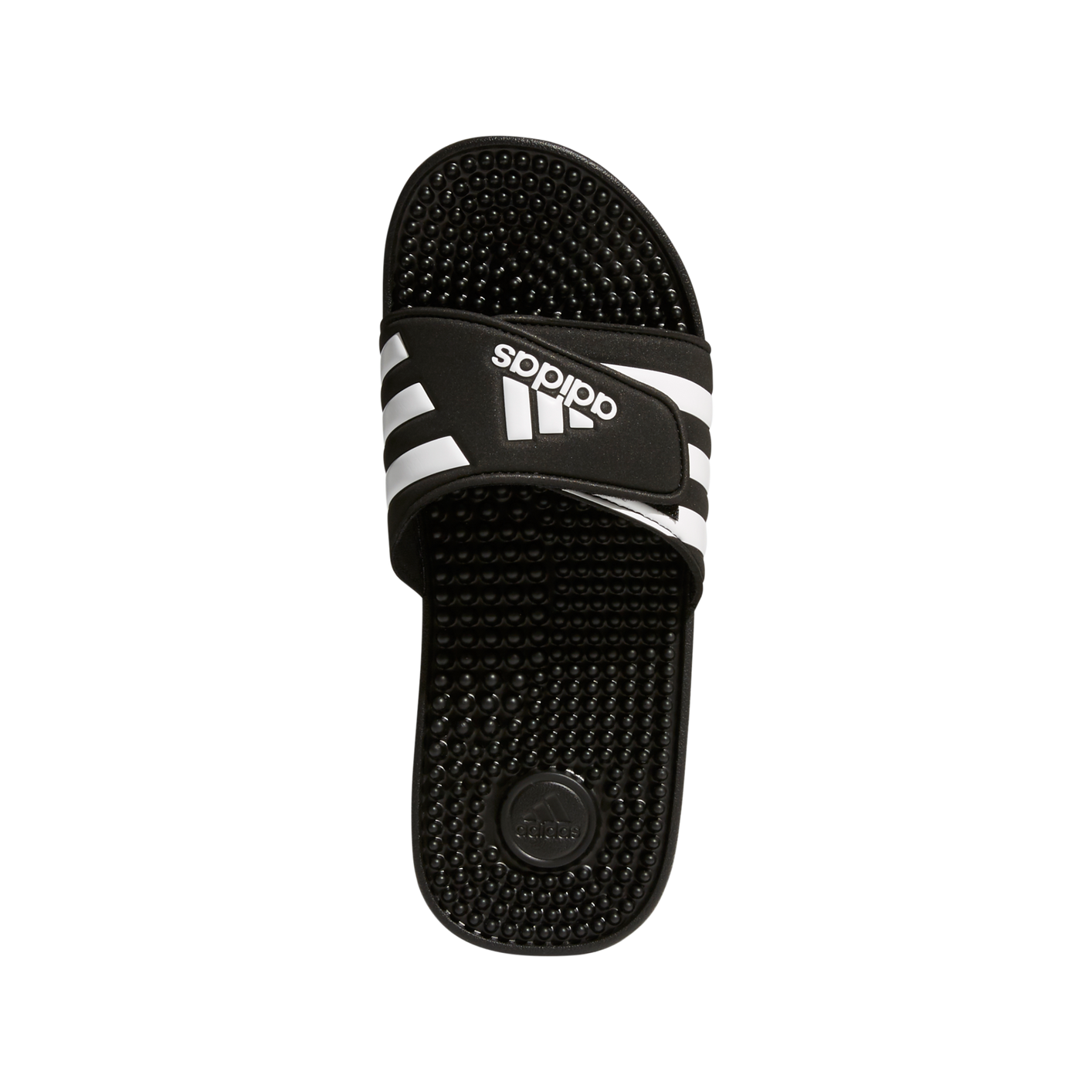 Recover from demanding workouts in these sporty slides. They have soft massaging nubs across the footbed for extra comfort. The hook-and-loop closure across the synthetic upper features the classic 3-Stripes.