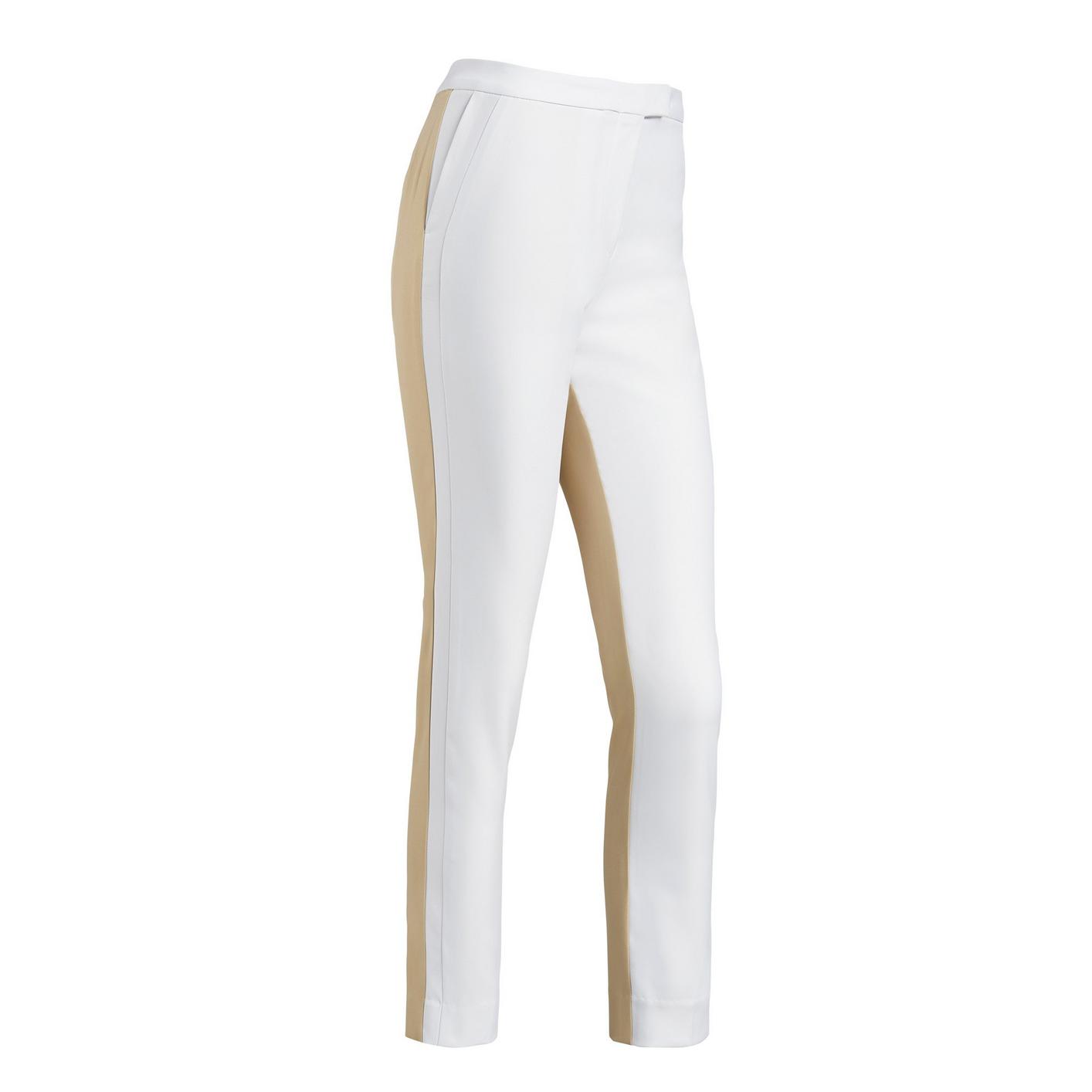Tailored to perfection, the colour block trouser is extremely lightweight with plenty of stretch. This flattering 7/8 length pant features a contrast tuxedo stripe & contrast back panels for extra style points.