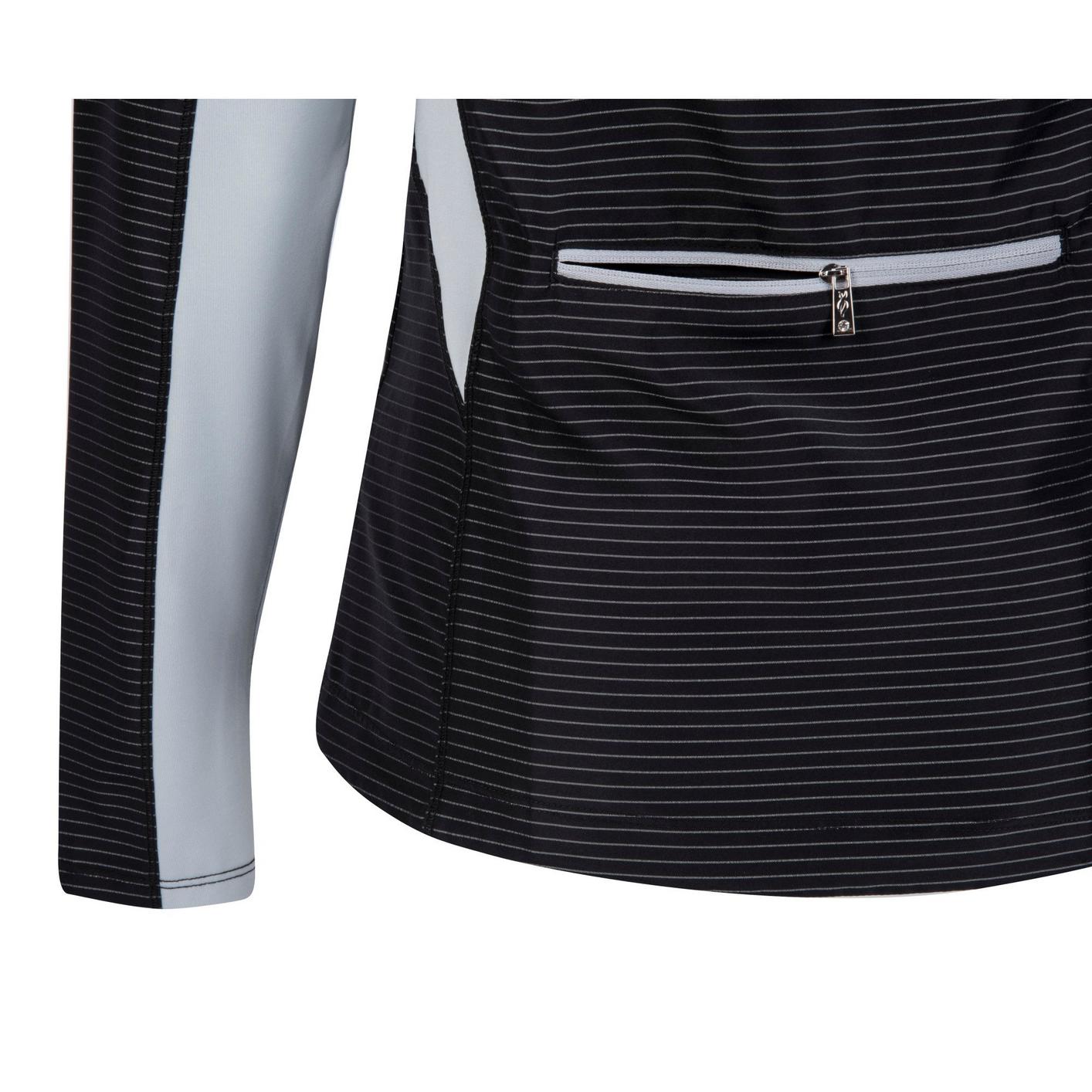 In your element, there’s nothing that holds you back with the Nancy Lopez Womens’ Pivot Jacket. This long sleeve, full-zip jacket features wind and water-resistant materials to keep you dry, warm and on top of your game. It’s made with 100% woven striped Polyester for the most comfortable, versatile piece of sportswear. The stretch knit side panels allow for a better range of movement. Use the front hand pockets to store earbuds, tees, a cellphone or chilled hands during those early morning practices. After your game, store this fully packable jacket into the back-zip pocket to maximize the storage space in your closet. With the signature Lopez logo at the right hip, this jacket leaves an everlasting mark on the golfer and her undefeated game. Pivot Jacket is the perfect choice to pair with a patterned or single-colour golf bottom.