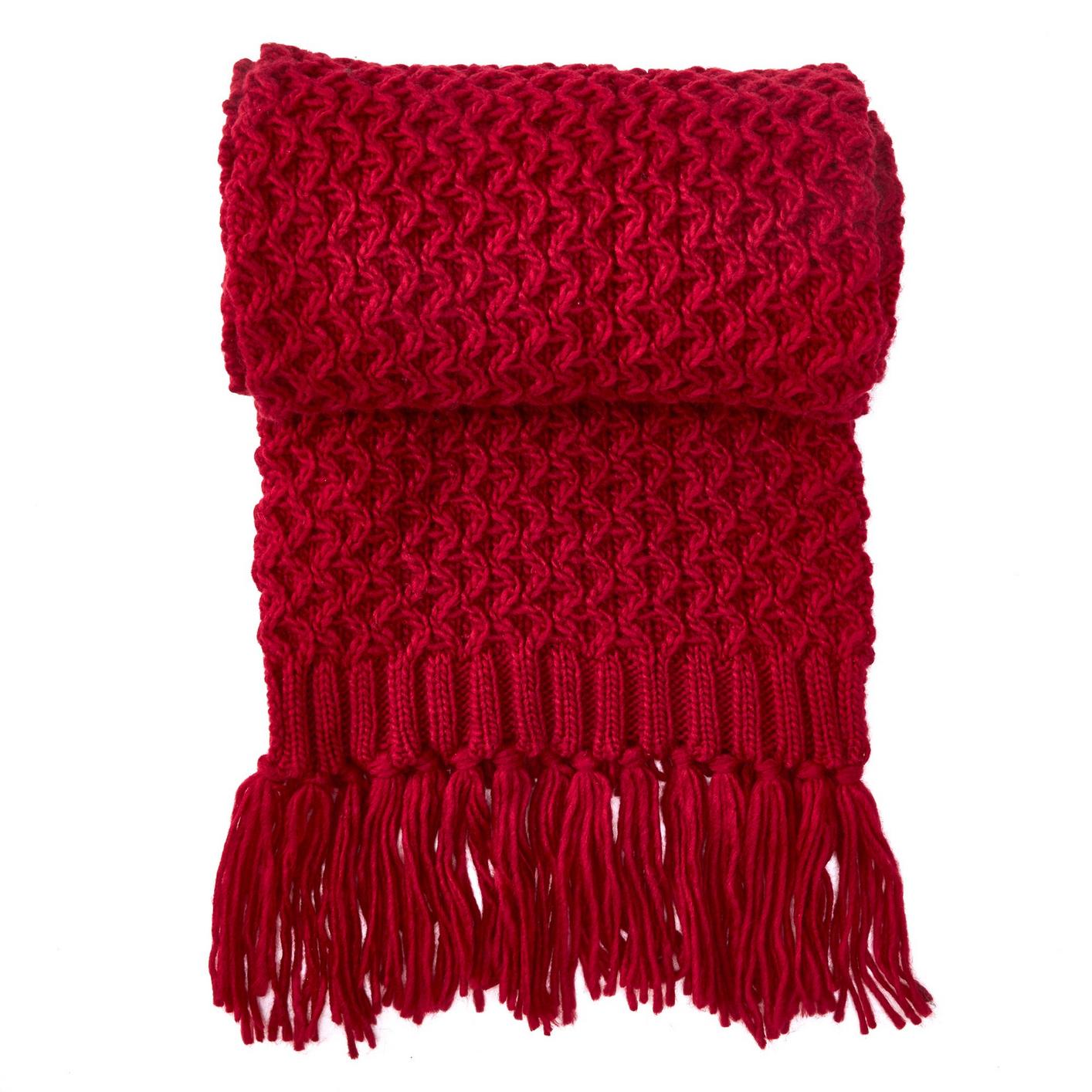 WOMENS POPCORN KNITWEAR SCARF BURG O/S WINTER