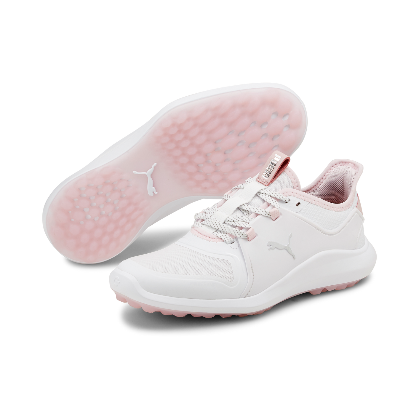 PUMA Women's Ignite Fasten 8 Spikeless Golf Shoe - White/Light Pink